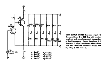 SOURCE: A. G. LLOYD, "MULTIOUTPUT PHASE SHIFTER USES ONE TRANSISTOR,"