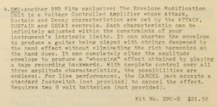 ENVELOPE MODIFICATION UNIT [0267] | DAVID TUDOR (BNB KIT) | 1979