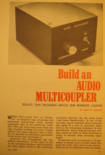 SOURCE: DON M. WHERRY, "BUILD AN AUDIO MULTICOUPLER," POPULAR ELECTRONICS, JULY 1971